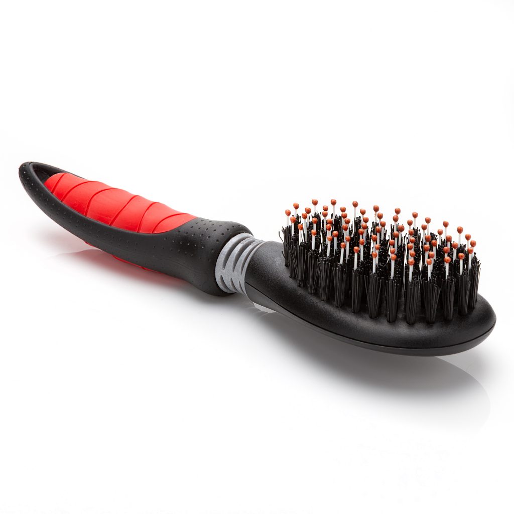 Durch sanftes Streichen erreichen die längeren Nylonborsten die unteren Schichten des Fells Ihres Haustieres, während die kürzeren Borsten dazu beitragen, die natürlichen Öle Ihres Haustieres in seinem Fell zu verteilen, damit es sauber und gesund bleibt.
